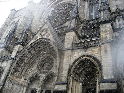 Thursday it started snowing...hard! We went to Macy's...it was HUGE. We went to the 7th floor and there were still more, I don't even know how many there were total. It took up an entire block! And that is A LOT for NYC! Then we went over to the Empire State Building. Because of the snow, there wasn't any visibility, so we couldn't go up to the top. We did this cool virtual helicopter ride though (called SkyRide), to fly over New York City. It was pretty cool and it was good to get a grasp on what all was really there and to see it all from above. Then we went to another pizzaria...it was in the Empire State Building. Again, fantastic pizza! Ryan pointed to a particlar "pie" and asked if it was italian sausage and the guy said, "No, it's eggplant...we're all kosher!" So we had kosher pizza in the Empire State Building! Then we ventured over to Central Park via subway. The subways were really interesting. Central Park was gorgeous with a fresh blanket of snow covering it! It was fairly empty too, just a few hardcore runners out! We didn't stay too long because there wasn't much more to see other than the snow covered park. From there, we took a taxi to a huge cathedral (St. John's, I think.) It's a good think we left Central Park when we did b/c by the time we went to the cathedral and stopped by the New York City Public Library (which was pretty cool, too) and back to our rom to get ready for dinner....the local news was reporting a death in Central Park! The snow was so wet and heavy that a tree limb fell on a man and killed him! Like I said, there weren't that many people in the park and it had to have been the same time we were there, or within minutes. That evening, we went to dinner then to a movie ("When in Rome"...cute movie), then dessert!!! At first we thought it was a sillly idea to go to a movie when you're in New York City, but after we thought about it...it's not something we get to do very often, so we took advantage of it!